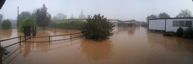 Thanks to the quick reaction of the staff, volunteers and friends of MONA, the situation at the moment is under control and the animals are not at risk, although a great portion of the facilities are under more than half a meter (2 feet) of water. The greatest damages took place in the warehouse, the kitchen and the macaque enclosures. The outdoor chimpanzee enclosures are also flooded.
