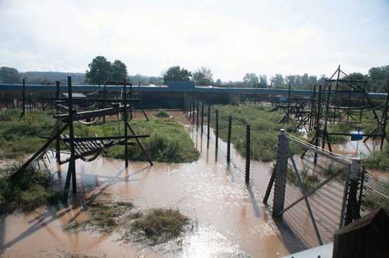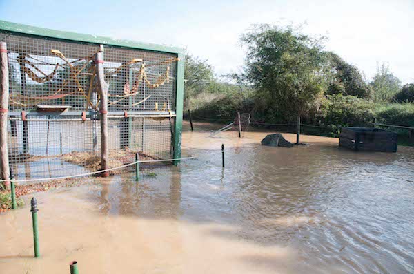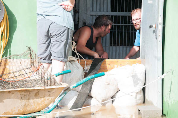 First thing we did once the danger was obvious, was making sure that all the animals were safe and sound. Obviously they were quite nervous and scared, having water entering their sleeping quarters, but they all had possibilities to escape the intruding water up in some hammocks and platforms.